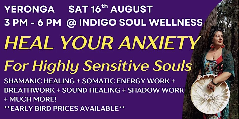 Experience a transformative 3-hour anxiety healing journey featuring powerful shamanic healing, somatic energy work, breathwork and sound healing within a supportive community of highly sensitive souls. This workshop is specifically designed to calm your nervous system, release anxiety-inducing stress and trauma, and help you reclaim inner peace. Especially crafted for highly sensitive empaths seeking lasting relief from anxiety and overwhelm.